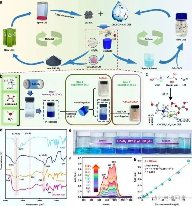 该团队首次在低共熔溶剂中实现了锂的优先提取及钴的精准分离。这一突破性进展得益于氯化胆碱—草酸—水低共熔溶剂的独特优势,其低黏度、高溶解性和选择性析出含锂化合物的特性,使得锂的优先提取成为可能。更重要的是,整个过程中无须添加还原剂和沉淀剂,大大降低了回收成本和环境风险。